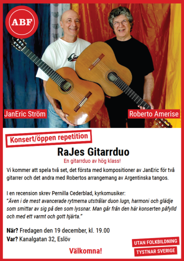 Koncert/Öppen repetition med RaJes Gitarrduo. Vi kommer spela två set, d…