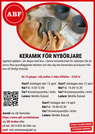 Keramik för nybörjare i Arlöv start den 12 och 14 april