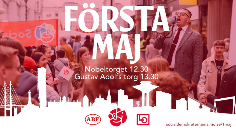 Första maj är arbetarrörelsens internationella högtidsdag. Det blir demonstrationståg mellan Nobeltorget och Gustav Adolfs Torg ackompanjerat av Spårvägens Musikkår. Årets tåg går under parollen ”Gemensamt ansvar för Sverige” för i tider av kris och krig kräver vi gemensamt ansvar för Sverige på första maj. Årets huvudtalare Susanne Gideonsson, ordförande i LO. Musik av och med malmömusikern och countryartisten Simon Andersson, tal och utdelning av Arbetarrörelsens kulturpris med mera!