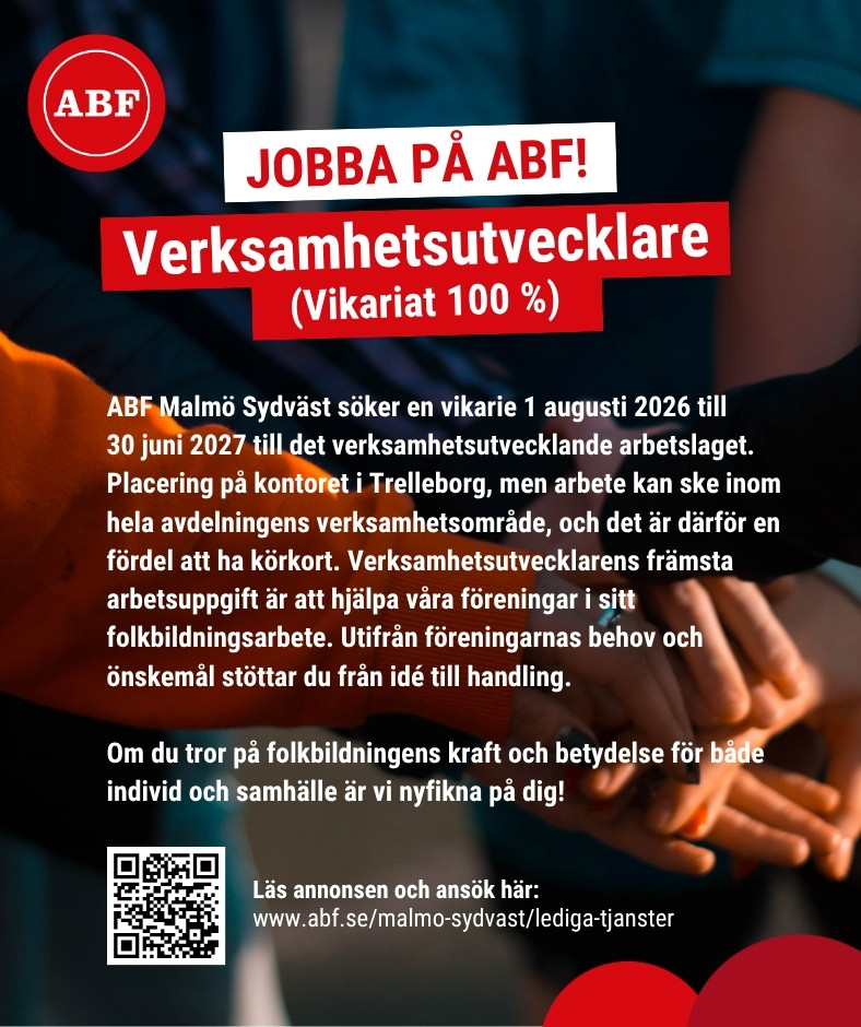 Läs hela annonsen här: https://www.abf.se/malmo-sydvast/lediga-tjanster/