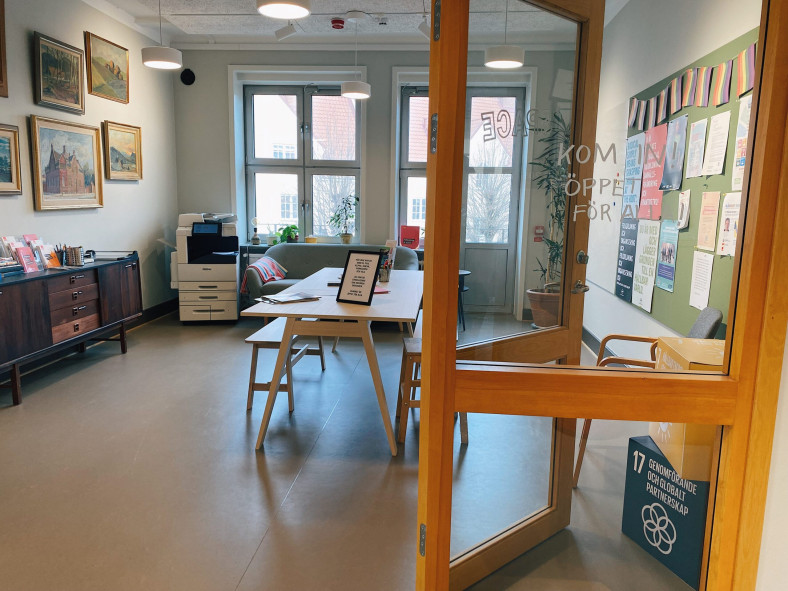 OPEN SPACE ligger på plan 2 i ABF-huset på Spånehusvägen 47. Rummet går inte att boka, utan är öppet jämt.
