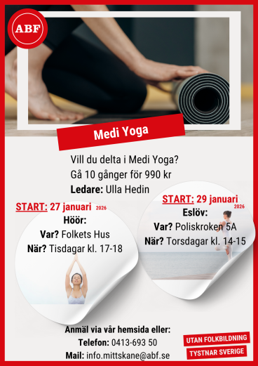 Vill du delta i Medi Yoga? Gå 10 gånger för 990 kr. Anmäl dig via vår he...