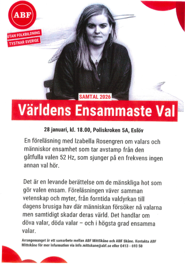 En föreläsning med Izabella Rosengren om valars och människors ensamhet...