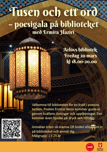 Tusen och ett ord -poesigala på biblioteket, målgrupp 13-25 år. Arlövs...