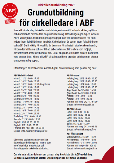 Grundutbildning för cirkelledare i ABF under våren 2026