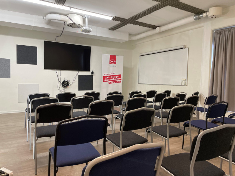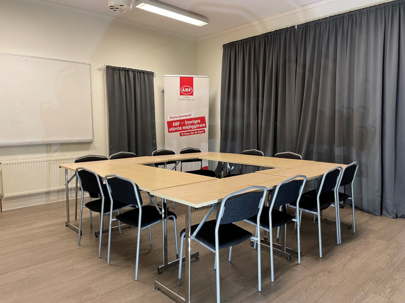 Centralt i Järfälla kommun på Kvarnplan 6 i Jakobsberg finns våra fina studielokaler som vi delar tillsammans med PRO Jakobsberg. Trådlöst Wifi finns i lokalen. Enklare utrustat kök/pentry och två toaletter finns. I lokalen får totalt max 30 personer vistas samtidigt.