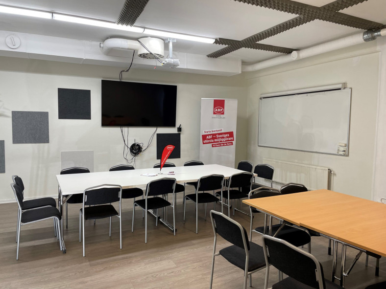 Studierummet Svanen är ett mellanstort möblerat rum lämpligt för större studiecirklar, seminarier eller kurser, 6-15 (max) deltagare. Borden är fällbara och kan tas undan vid behov av öppna ytor. Spegelvägg, whiteboardtavla och blädderblock finns.