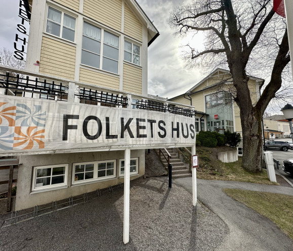 Välkommen till oss. Du hittar oss i Folkets hus lokaler, ingången till höger, en trappa upp.