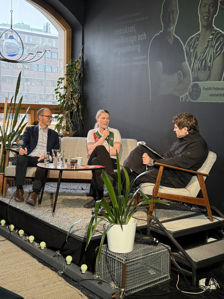 Utgångspunkten var mötet mellan Tomas Eneroth, ABF:s förbundsordförande, och Hedvig Lindahl, en av Sveriges mest meriterade fotbollsspelare. Båda har rötter i folkrörelserna och ett starkt engagemang för demokratin. Samtalet leddes av Fredrik Pettersson, kommunikation- och verksamhetschef på ABFs förbundsexpedition.