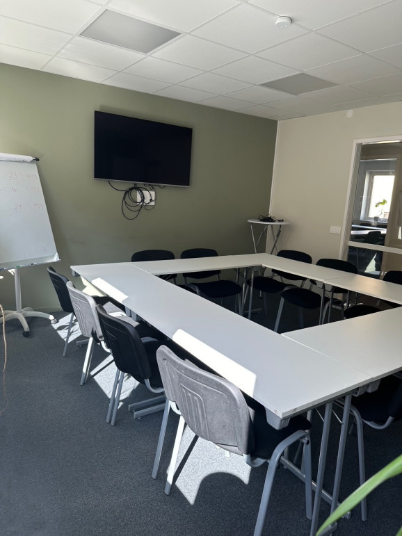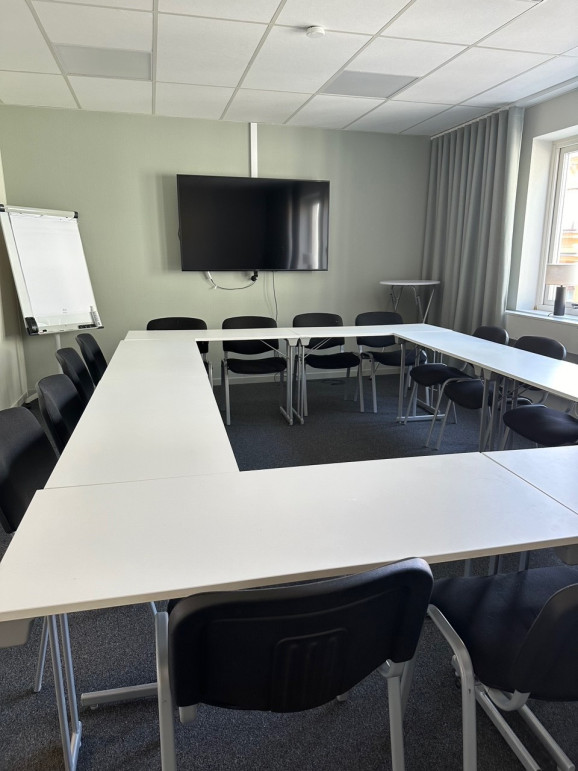 • Konferensrummet Tallen rymmer 16-20 personer, beroende på möblering. Här finns även möjlighet att ha hybridmöten.