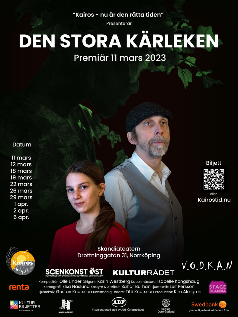 Kairos presenterar föreställningen ”Den stora kärleken”. Premiär 11 mars 2023 på Skandiateatern i Norrköping.