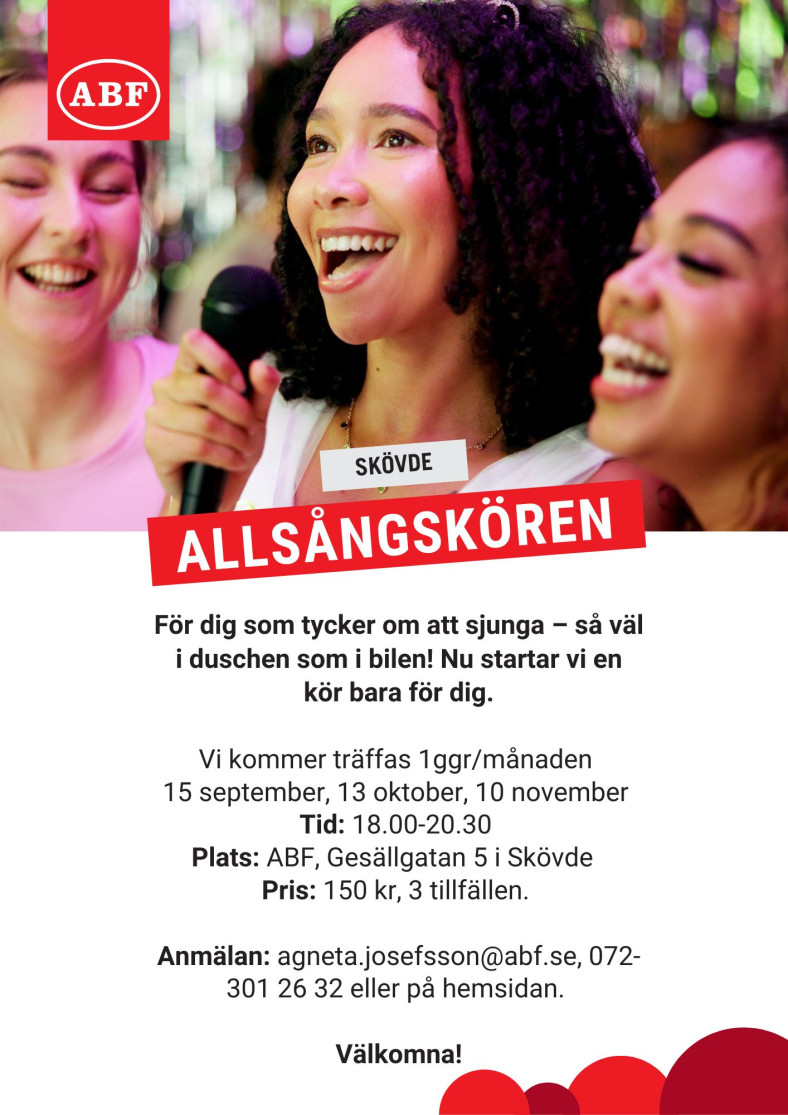 Anmälan: agneta.josefsson@abf.se, 072-301 26 32 eller på hemsidan.