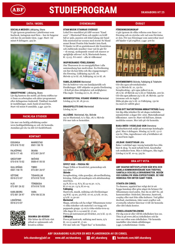 Här kan du se några av ABF Skaraborgs studieprogram för höstterminen 2025.