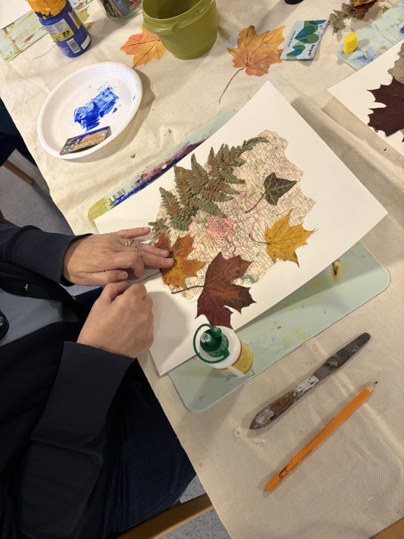 Kanske hade det varit ännu tystare och tommare utan folkbildningen. Den cirkel vi besökte utforskar färg tillsammans. De målar, klistrar, klipper och kreerar varje vecka under ledning av Gerd Carling. Det är andra terminen gruppen ses och de har väldigt trevligt ihop. En av deltagarna som åker från Edsvalla för att delta berättar: